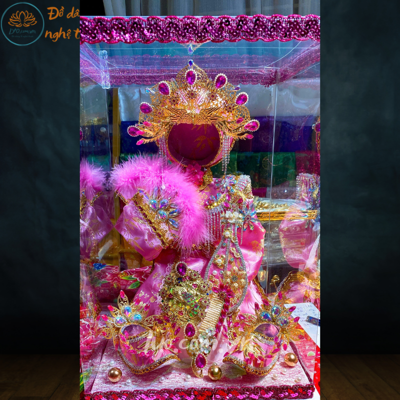 Trong tín ngưỡng thờ Mẫu Tứ Phủ linh thiêng, Cô Chín Sòng Sơn là vị Thánh Cô nổi tiếng với sắc đẹp tuyệt trần, quyền năng ban phát tài lộc và đặc biệt là tình duyên. Để thể hiện lòng thành kính tuyệt đối, lễ vật dâng Cô Chín cần phải thật lộng lẫy và tinh tế. Xưởng đồ lễ LY’O tự hào giới thiệu Bộ Mã Hồng Dâng Cô Chín LYO-052 – một tuyệt tác nghệ thuật được chế tác thủ công.