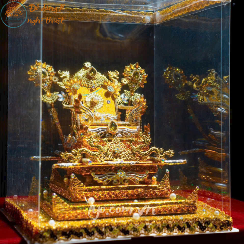 Hình thức: Ngai được bảo quản trang trọng trong hộp mica chất lượng cao, giúp giữ trọn vẻ đẹp và sự trang nghiêm.